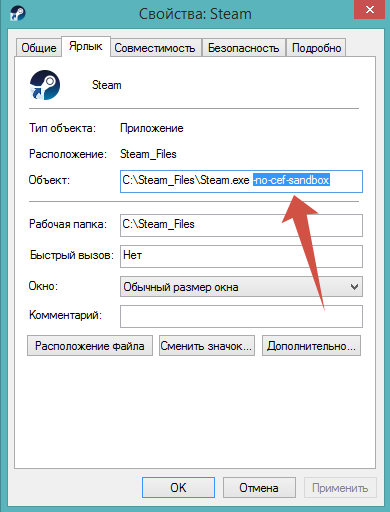 Приветствую читатель! У некоторых пользователей ОС Windows 8.1, или поздних версий Windows появилась распостранённая ошибка при скачивании Steam. Звучит она так: Steam - критическая ошибка Steam больше не поддерживается в вашей версии операционной системы. Сейчас, в этой краткой статье я распишу способ, как устранить эту проблему. 1-ый шаг- Кликаем левой кнопкой мыши по значку Steam, нажимаем "Свойства", потом "Ярлык", нажимаем на Объект, ставим пробел и вводим следующее: -no-cef-sandbox После этого нажимаем "Применить" и "ОК'' 2-ой шаг- Нажимаем на Steam правой кнопкой мыши, кликаем на "Расположение файла". В открывшейся папке ищем 2 файла: tier0_s.dll и tier0_s64.dll и удаляем их. После того, как вы выполнили все действия, можете спокойно пользоваться Steam. Если я вам помог и проблема решилась, пожалуйста, поставьте лайк и подпишитесь, а если не жалко, отправьте донат. Буду рад любой сумме. Спасибо за прочтение моей первой статьи!