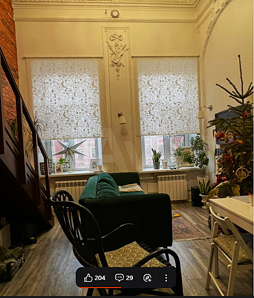 И затем появится в своей комнате, с роскошной лепниной конца 19-го века на потолке и стенах, с лофтовой кирпичной стеной. И двумя окнами, выходящими на одну из главных улиц исторического Центра Санкт-Петербурга.