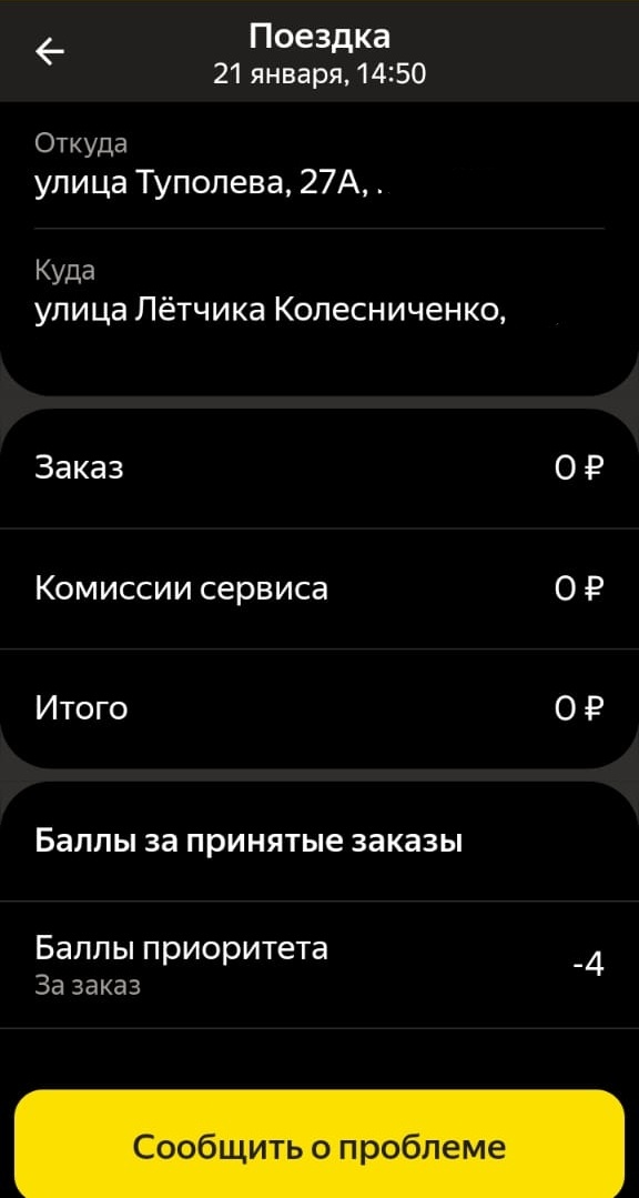 Цели добьется тот, кто стремится, а не тот, кто ничего не делает и только жалуется на жизнь. Приветствую вас, друзья. Иногда алгоритм подставляет... И причем очень даже обидно. В нашем городе сейчас большая проблема - это gps. Хорошо, когда ты знаешь город, плохо - если наоборот. Но именно знание города помогает не только работать, но и добиваться справедливости. Вот так был случай у меня. Очередной сбой в программе, перегрузил и прилетает мне заказ: Туполева 27А. Все бы ничего, да вот только мое местоположение в этот момент - Минская 43 "Больница электроника". А на заказе написано - ближняя подача... Я так и опешил. С ума сошли? Туда ехать 7 км. За 3 минуты? Какая к черту ближняя подача? Естественно отмена заказа... И опа - минус 4 балла приоритета. Все бы ничего. Но это дальняя подача, а там обычно "отказ без потери приоритета". Естественно я начинаю диалог с поддержкой. Конечно, можно было бы оставить эту затею, потому что эти 4 балла не проблема. Но дело принципа. Я же н