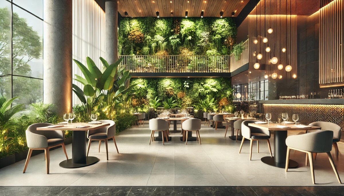 Современный дизайн ресторана: как зелень делает интерьер стильным