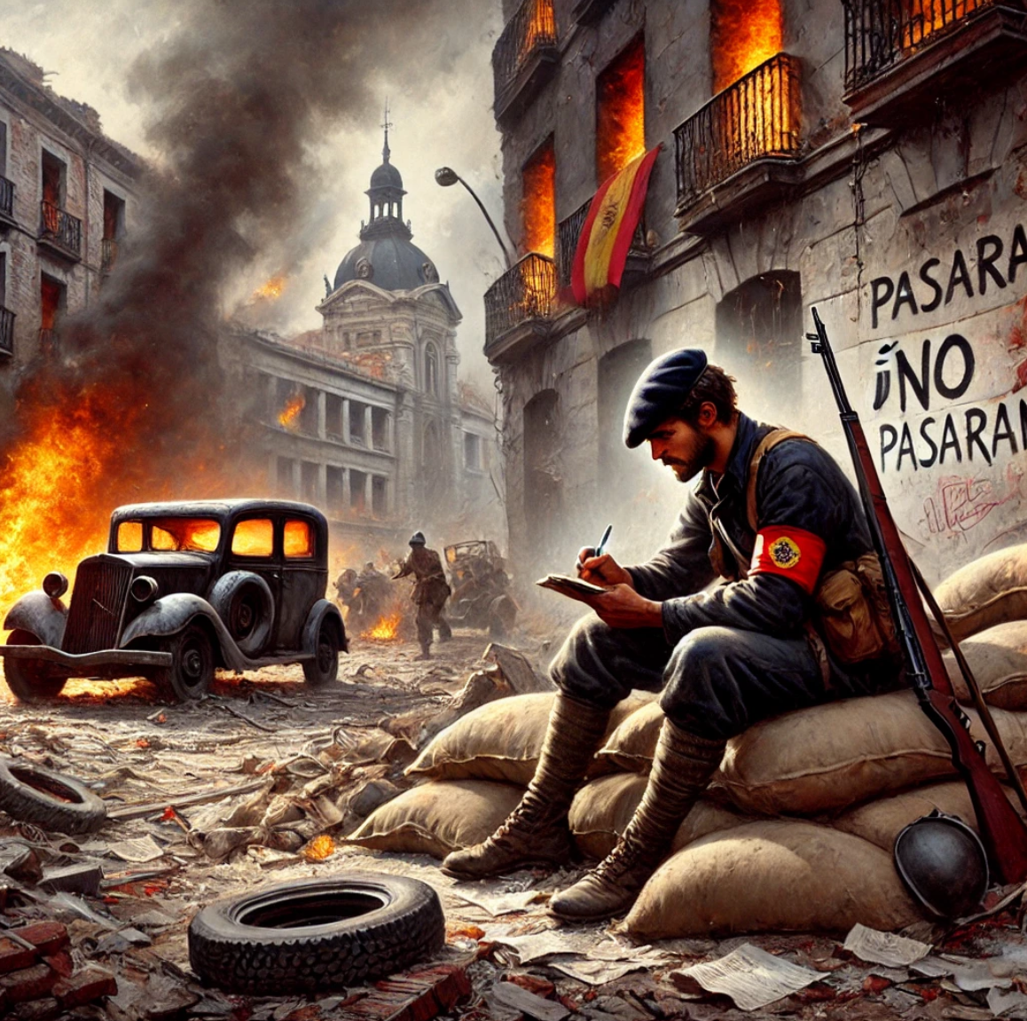 («Они не пройдут!» — лозунг защитников Мадрида) Меня зовут Мигель Санчес, я родом из небольшого городка Гвадалахара, недалеко от столицы. До недавнего времени я работал на машиностроительном заводе, а вечерами помогал отцу в магазине. Но грянул военный мятеж — генерал Франко и другие взбунтовались против законной республиканской власти. Теперь мы должны защищать Мадрид и всю Испанию от наступающих националистов. Я веду этот дневник, чтобы когда-нибудь люди узнали, как простые граждане взялись за оружие ради свободы. Сегодня радиостанции сообщили, что группа генералов подняла военный бунт в Марокко и некоторых частях Испании. Говорят, их возглавляет генерал Франко. По всей стране царит тревога. В Мадриде рабочие и студенты спешно формируют боевые дружины — «милисии» — чтобы отразить угрозу. Я решил присоединиться к республиканским силам, ведь нельзя позволить, чтобы военный переворот разрушил наши мечты о справедливом обществе. На фронтах по всей Испании идут ожесточённы
