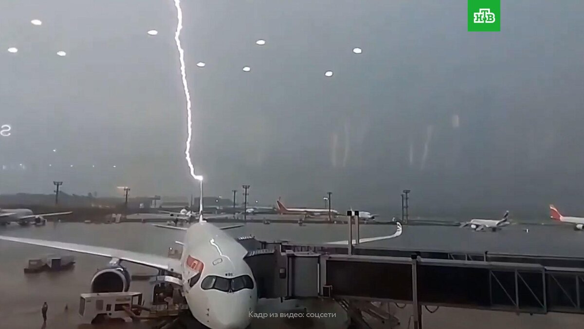 Очевидцы сняли на видео, как молния несколько раз попала в пассажирский Airbus в аэропорту Сан-Паулу.