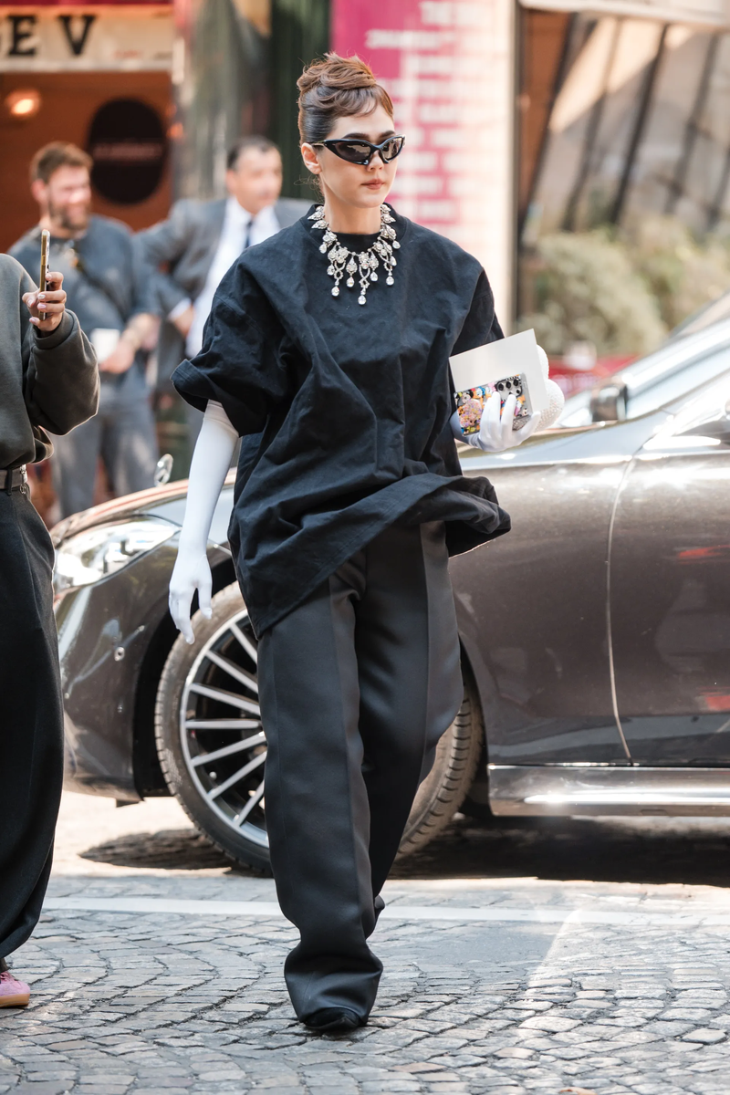 Жемчужное ожерелье можно носить как самостоятельный элемент, подчеркивая чистоту и элегантность образа, либо комбинировать с другими украшениями для создания более расслабленного и современного стиля. Например, Miu Miu предлагает интересный прием: наденьте ожерелье чуть ниже воротника рубашки, добавив образу легкую небрежность и утонченность.