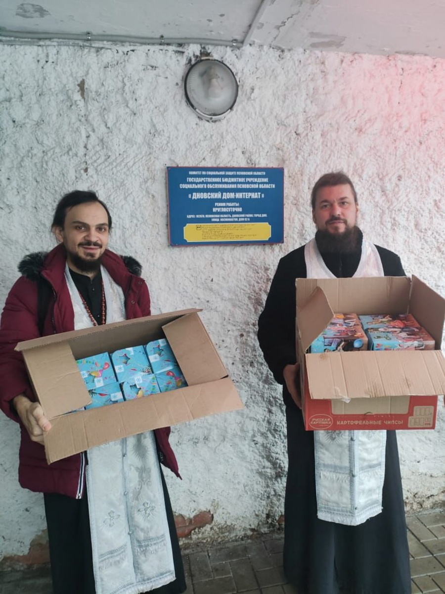 8 января 2025 года настоятель храма Архангела Михаила города Дно протоиерей Сергий Андреев и клирик храма иерей Антоний Пауков посетили ГБУСО «Дновский дом-интернат», где поздравили постояльцев со светлым праздником Рождества Христова. Батюшки вместе с хором исполнили Рождественские песнопения и подарили сладкие подарки.