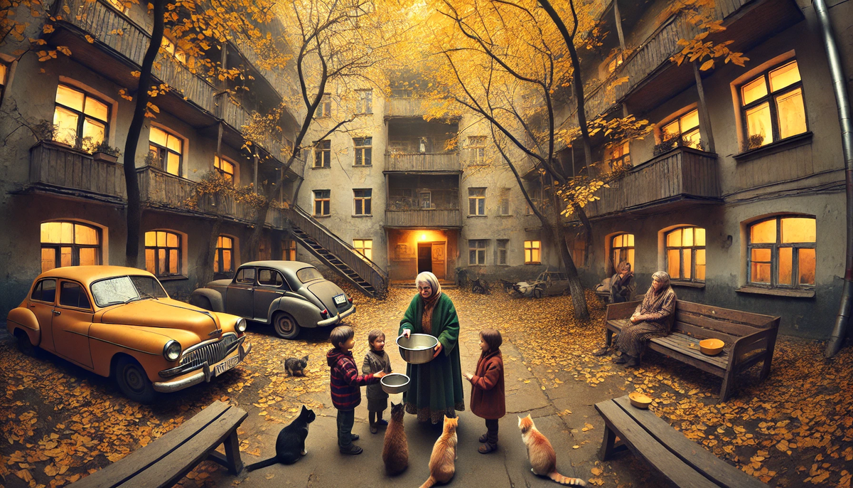 Но однажды ребята увидели, как она спускается с крыльца с небольшой миской в руках. За её спиной увивались несколько бездомных кошек: рыжий со шрамом на ухе, чёрный, как ночь, и серый, полосатый, с задиристым видом. «Смотрите, она их кормит!» – шепнула Алина, держа за рукав своего брата Пашку.