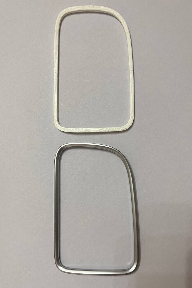 Здравствуйте! Закончил моделировать деталь под печать. Грубые места нужно обработать: В целом, печать вышла неплохая на скорости 80 и на заполнении 30%, но нужно подобрать параметры поддержек от стола до детали, т.к. обратная сторона выглядит абразивно: Но это не мешает поставить ее на дефлектор: Осталось покрасить в нужный цвет и можно устанавливать. Кстати, ножки, которые есть на референсе, я моделировать не стал, все равно при монтаже они не играют особой роли, данную рамку можно просто установить на термоклей или что-то в этом роде. Моделировал я данную деталь следующим образом: сначала сделал фото дефлектора под углом 90 градусов сверху и сбоку, затем загрузил в блендер как референсы и замерил то место, где есть самая простая геометрия, то есть тот прямоугольник, который предназначен для колесика изменения скорости потока. После чего добавил по этим размерам примитив и его подогнал под длину и ширину. Ну, и замерил высоту соответственно. Остается только отмасштабировать сами рефер