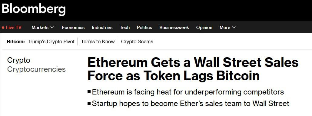 Ethereum теряет позиции, отставая от BTC и конкурентов вроде Solana ❕Чтобы вернуть интерес инвесторов, запущен проект Etherealize, поддержанный Виталиком Батуриным и Ethereum Foundation. Etherealize будет продвигать Ethereum на Wall Street и разрабатывать решения для упрощения работы с банками🏦 Также у SOL и XRP гонка за 2 место в списке топа по "капе" Если ETH(Эфир) не даст жару вверх, они займут его место очень скоро🧐 Берите в учет то, что SOL(Cолана) может через пол года стоить 800-1000$, а может и заскамиться со своими мемами 🤓 Хайп на то и хайп, а торговать нужно с умом , рассказываю в закрытом канале — t.me/cripto_baffet