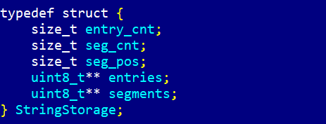 В ней хранится количество записей (entry_cnt), количество выделенных сегментов (seg_cnt), позиция записи внутри текущего сегмента (seg_pos), массив записей (entries) и массив сегментов (segments).