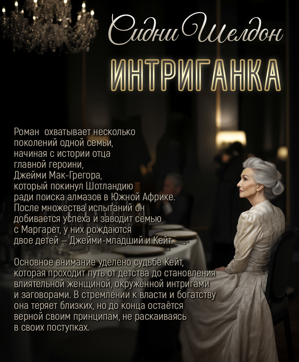 «Интриганка» — это классический детективный триллер от мастера жанра Сидни Шелдона. В центре сюжета — история амбициозной женщины, которая готова на всё ради достижения своих целей. Роман полон интриг и напряженных моментов. Весьма захватывающее чтиво. В советское время за книгами Шелдона была настоящая охота. И если удавалось каким-то образом урвать эти детективы, то удовольствие было непередаваемым! Что касается экранизаций, то по роману было снято несколько фильмов и сериалов. Один из самых известных — мини-сериал 1984 года. Познакомимся с несколькими ключевыми героями. Его дочь И внучки Кейт Если вы уже читали этот роман обязательно поделитесь своим впечатлением!