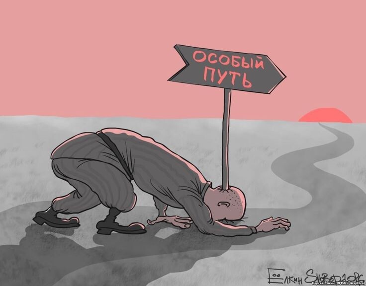 Куда ведет особый путь? из никуда в куда ни будь? Сквозь все кусты, ломись вперед, а рядом вон шоссе идет. Но нам не нужно и зачем, добавим мы себе проблем, лишь бы только царь сидел, и с высока на нас смотрел. Отдельный путь и лишний ген, и нам не нужно перемен. Мы ненавидим всех вокруг, любой диктатор — это друг. Они там нас еще не знают, и нас пускай не понимают, мы цивилизация другая, добро несем, всех матом лая. Вот всех врагов мы победим, добром вокруг всех наградим, какая жизнь тогда начнется, любой от зависти загнется. Ну а пока одежду рвем, назад идем своим путем. Ура, вон пропасть уже видно, и скрепно падать нам не стыдно. Куда ведет особый путь? из никуда в куда ни будь? Сквозь все кусты, ломись вперед, а рядом вон шоссе идет. Помочь каналу можно здесь Сбербанк 5336 6901 4066 8320 Юлия Сергеевна Карта Юбмани 5106 2111 0178 0638. Что бы не потеряться в случае чего, подписывайтесь на Телеграмм канал Новости не жизнь