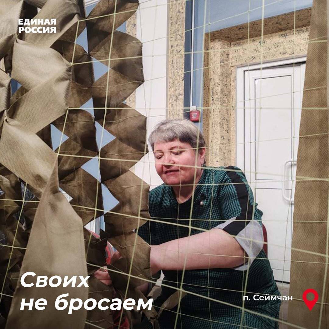 Мастерскую по плетению маскировочных сетей организовали активисты Единой России вместе с неравнодушными жителями поселка Сеймчан в Доме культуры. «В сложное время для нашей страны мы все должны сплотиться, а не жить так, как будто нас это не касается. Ведь даже одна маскировочная сеть может помочь уберечь кого - то из наших воинов от ранений и гибели. А мы в силах все вместе сделать таких сетей сотни, выкроив из своего личного времени хотя бы один выходной день или пару часов в неделю, это вполне посильная нагрузка для каждого», - отметила партиец Елена Лысенкова. #своихнебросаем #ЕРпомогает
