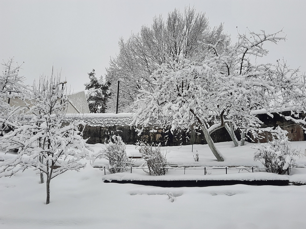 За заснеженными ветками деревьев стенку опять почти не видно.