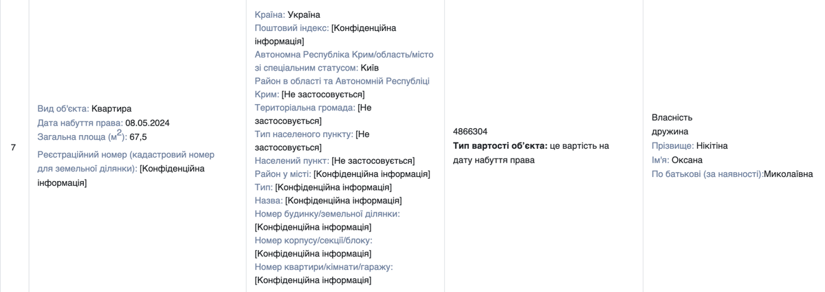 Информации о доходах жены у него нет, так как она не предоставила данные о своей предпринимательской деятельности, однако сообщила о получении 15 тысяч гривен соцвыплат (35 тысяч рублей).
