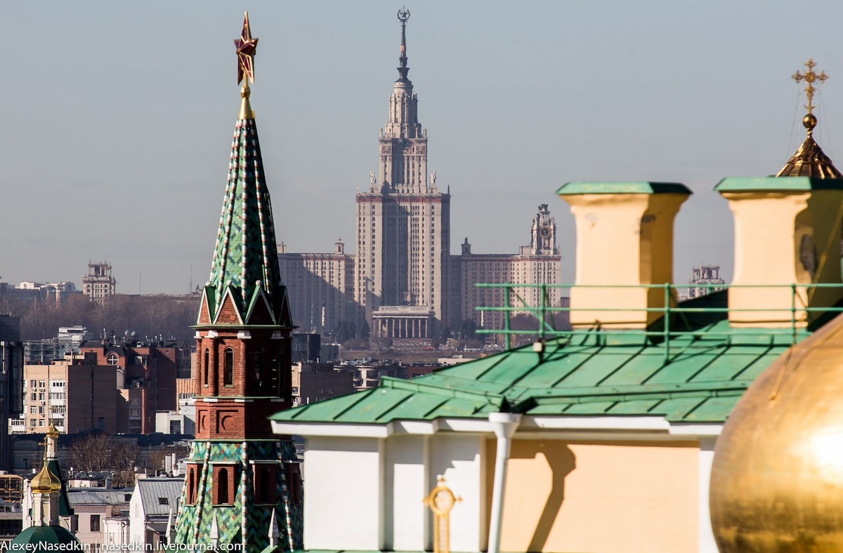 Люблю эту фотографию. Ведь если постараться, то запечатлеть в деталях могущественную высотку МГУ можно и не находясь в непосредственной близости от неё. Достаточно самого центра Москвы. Впрочем, речь сейчас не только и не столько об этом. Как известно, накануне студенчество отмечало Татьянин день — памятную дату, восходящую к имени раннехристианской мученицы Татьяны Римской, упоминание которой совершается в Православной церкви 12 (25) января.