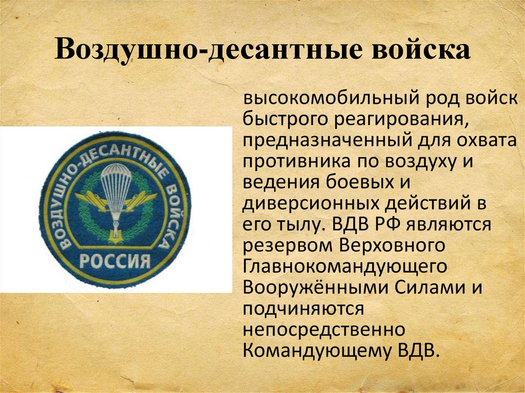 Одно из первых узнал, что войска наши воздушно-десантные и дивизии воздушно-десантные, а состоят они из парашютно-десантных полков. А все потому, что войска и дивизия имеют свою авиацию (в дивизии это эскадрилья АН-2), а полк только парашюты.