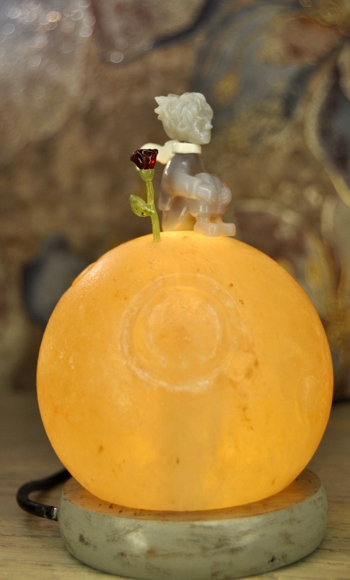 В прошлом посте я показала только результат, в этом будет процесс. Сначала традиционно для ЛЛ фото результата. Я по максимуму сократила все, что могла, но все равно получилось очень длинно, зато в конце есть еще фото готового ночника))) Процесс состоял из пяти этапов, первый - тело принца, для этого у меня припасена половинка тиманского агата. Обрезаю край, который будет низом и лишнее с боков, зачищаю корку с обратной стороны камня, намечаю руки Дальше снимаю лишнее с боков, делаю черновую спину, шею и отделяю попу от ног. Вырезаю курточку и коленки. Вырезаю штанишки, ножки и привожу все части тела к одному знаменателю Теперь нужно все скруглить и выровнять. И финалочка - ручки и ботиночки. Следующий этап - голова. Тоже кусочек тиманского агата, но чуть более светлый. Вырезаю из него что-то вроде цилиндра, выбираю сторону без прожилок и намечаю лицо. Что-то похожее на домовенка Кузю получилось))) Делаю из Кузи мальчика в шапочке с ушками, а потом вырезаю на макушке странную ромашку. Л