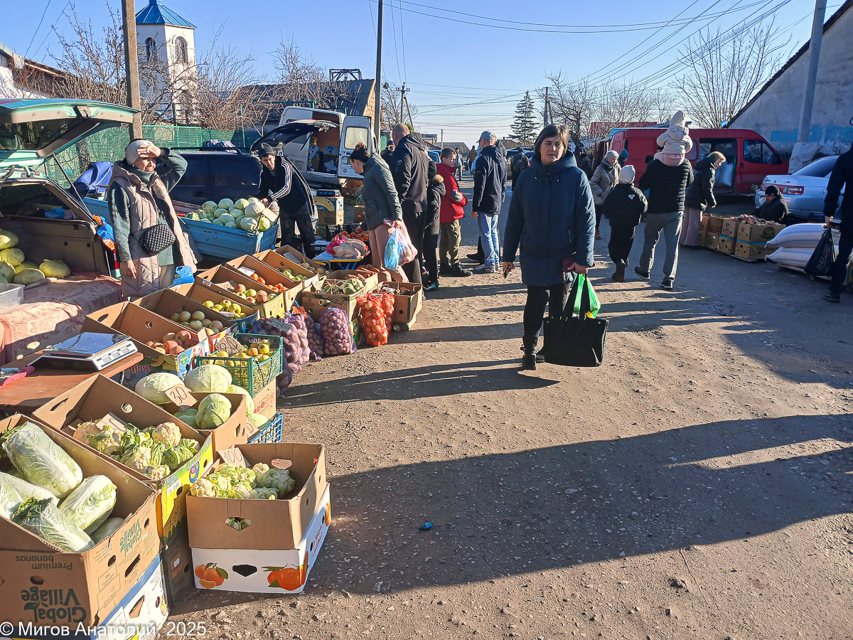 Давно не рассказывал про то, чем торгуют на нашем продуктовом рынке в городке Старый Крым. Вчера, в воскресенье, с утра отправился за овощами и фруктами. Ну, и конечно, попутно собрал материал для традиционного фоторепортажа. Он, кстати, будет первым в 2025 году. Начну с помидоров. Сегодня самые дешевые были по 175 руб/кг. А самые дорогие по 280 рублей. Также можно было купить помидоры по цене 250 руб/кг. Признаюсь, я не поклонник зимних тепличных помидоров. Настоящие, сладкие томаты, хотя и тоже тепличные, обычно появляются на нашем рынке в начале мая. Вот тогда мы и начинаем их покупать, пока в июле свои в огороде не созреют. А с декабря до мая перебиваемся замороженными. Жаль, что в салат они не годятся, но вот сок из них получается замечательный, и в разные тушеные овощные блюда хорошо идут. Лук репчатый 40-50 руб/кг. Лук ялтинский 120 рублей. Морковь от 20 до 45 руб/кг. При этом по 20-25 рублей вполне приличная морковь. Чеснок по 400 руб/кг. Судя по фасовке, это уже привозной чес