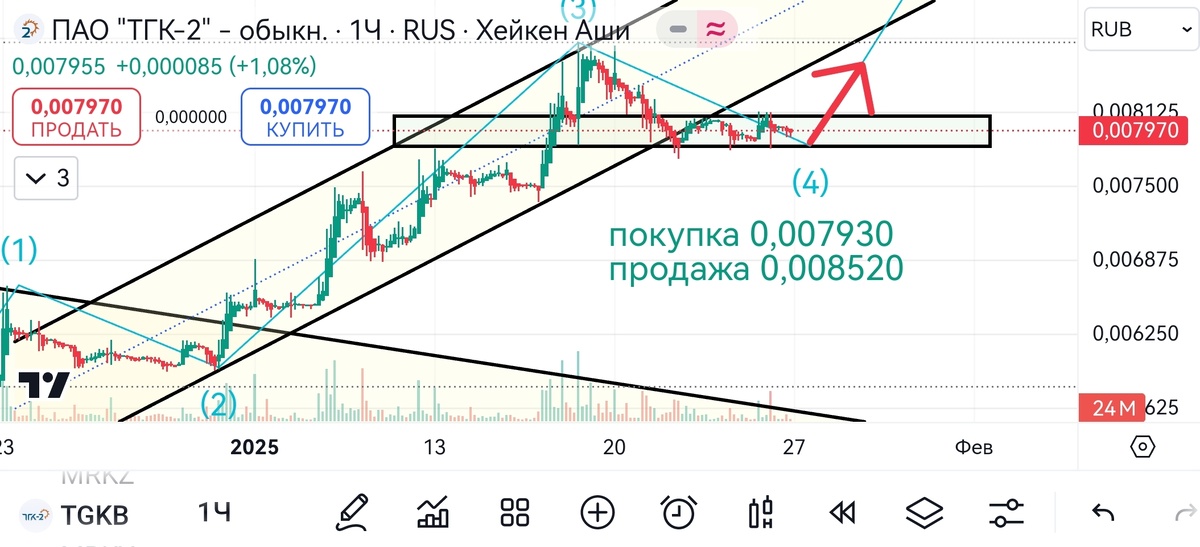 Сейчас выложу скрины по акциям энергетической отрасли. Есть ряд условий, при которых я буду совершать сделки. 1. Наш рынок должен как минимум не падать. Смотрим на индекс. Энергетики стреляют хорошо, но также хорошо могут и падать при падающем рынке. 2. Не котлетить, не входить больше 1–2% от депо в каждую бумагу. Бумаги низколиквидные, можно застрять. 3. Бумаги чисто спекулятивные. На день, два, три, четыре. Если индекс начинает значимо падать, лучше закрыть позиции. 4. Не гнаться за точкой входа. Поставил заявку и жди. Не купилась, так не купилась. 5. Не гнаться за точкой продажи. Можно точку продажи поставить чуть ниже, чем на скрине. 6. Не ИИР. Не ИИР.