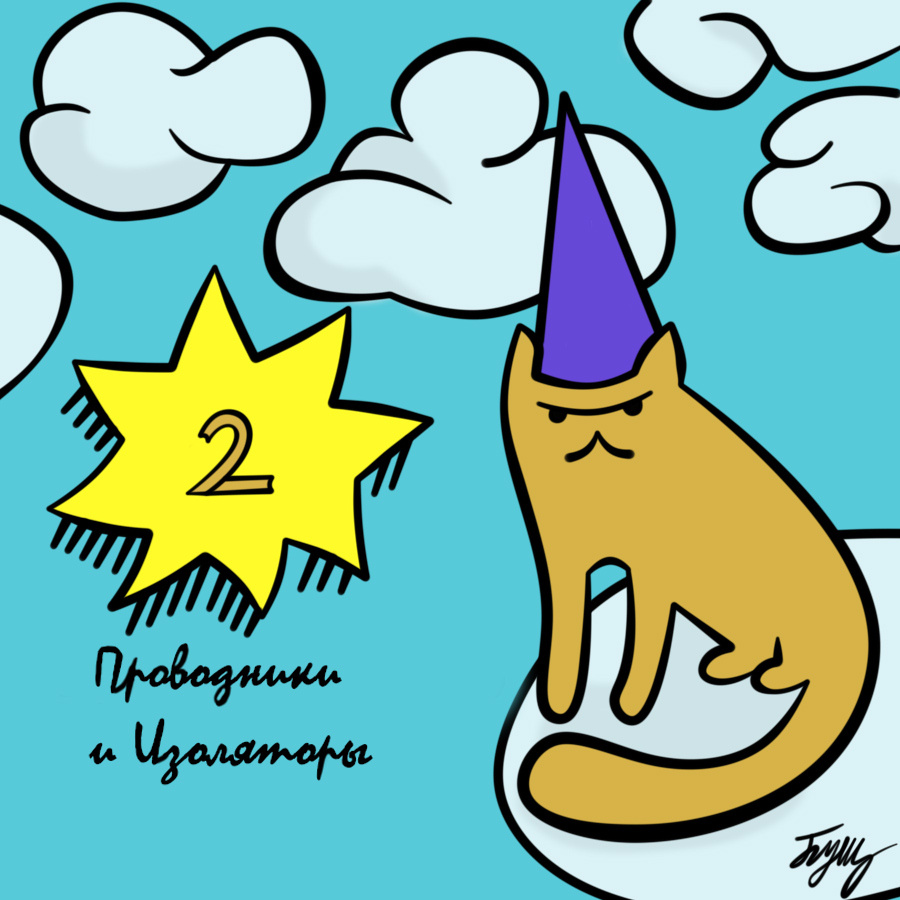 Все вещества в природе можно разделить на две основные группы в зависимости от их способности проводить электрический ток. Одни вещества являются проводниками, в то время как другие — изоляторами, или по другому диэлектриками. В ядрах некоторых атомов есть электроны, которые слабо связаны с ядром. Они могут легко покинуть атом. Такие электроны называются свободными. Они постоянно находятся в хаотичном движении. В процессе движения электроны сталкиваются с молекулами, выбивая из них новые свободные электроны. На место этих электронов приходят те, которые стали причиной данного явления. Если на проводник действует внешнее электрическое поле, то беспорядочное движение свободных электронов сменяется движением направленным в одну сторону Хорошими проводниками электричества являются металлы, уголь, водные растворы кислот и солей. В электротехнике чаще всего применяются медные, алюминиевые и стальные проводники. В природе существует множество веществ, не имеющих свободных электронов. К таким