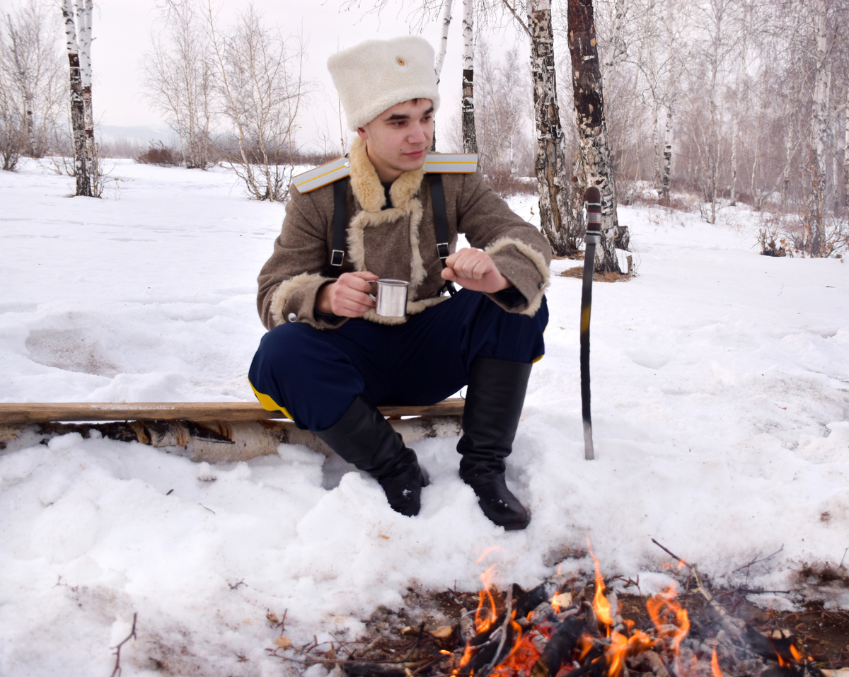 Четвёртый съёмочный день прошёл продуктивно, снимали сцены у костра, фланкировку казачьей шашкой, пили горячий чай. Скоро премьера видеоролика, а пока посмотрите фоторепортаж.