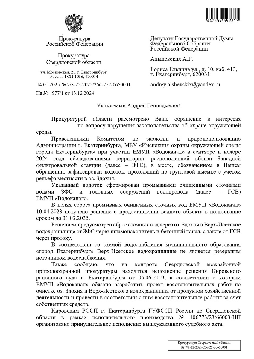 В 2009 году суд обязал предприятие разработать проект по очистке озера Здохня и Верх-Исетского водохранилища, как официально говорится, от продуктов хозяйственной деятельности, а следом воплотить его в жизнь. В своем ответе надзорное ведомство рассказывает, что предпринято к настоящему времени.