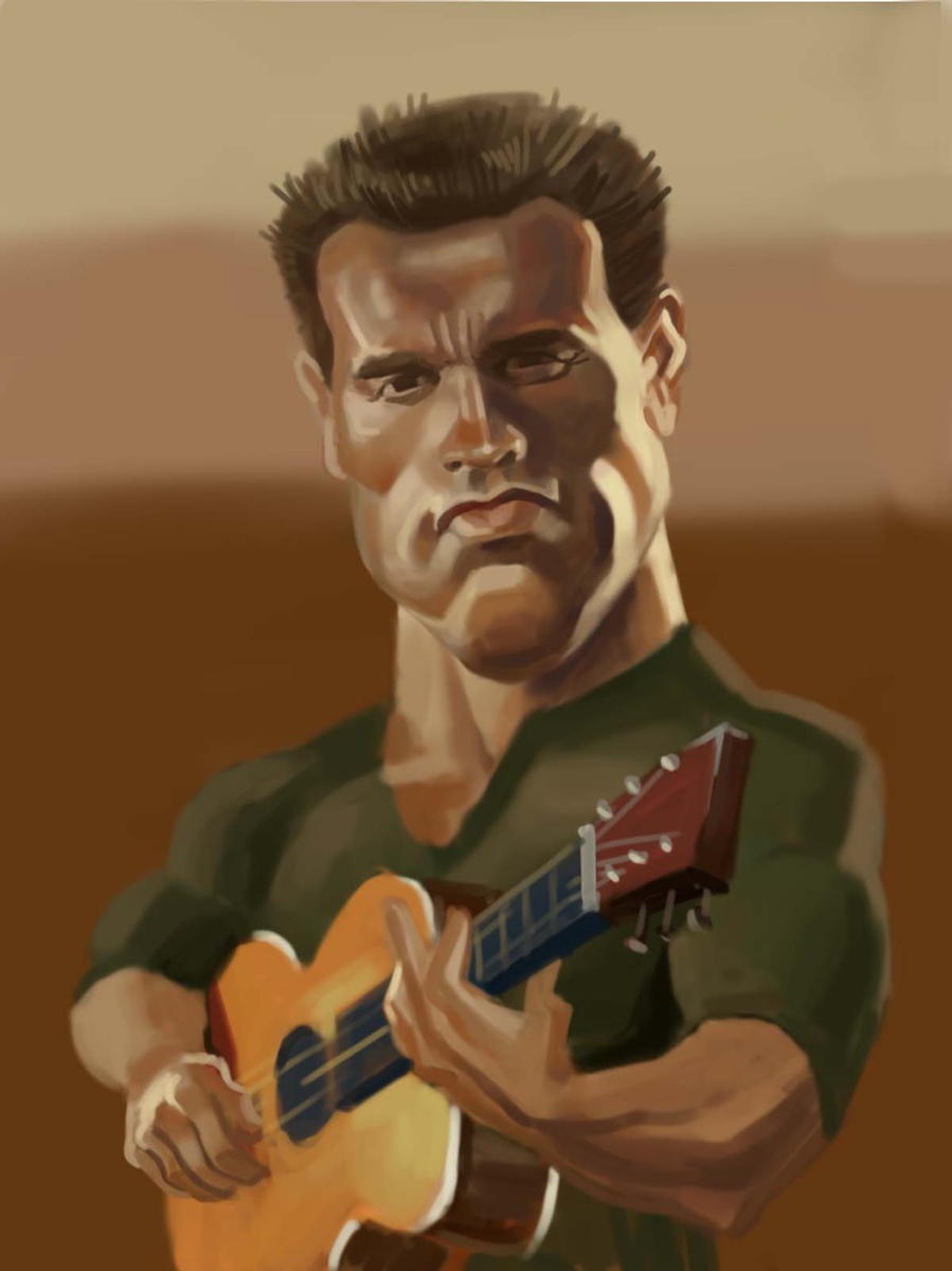 Нарисовал Шварца, потому как я дитя видеосалонов, деваться некуда По законам жанра у Шварца в руках должен быть автомат. Но я подумал, что с гитарой будет смешней. #геройбоевика