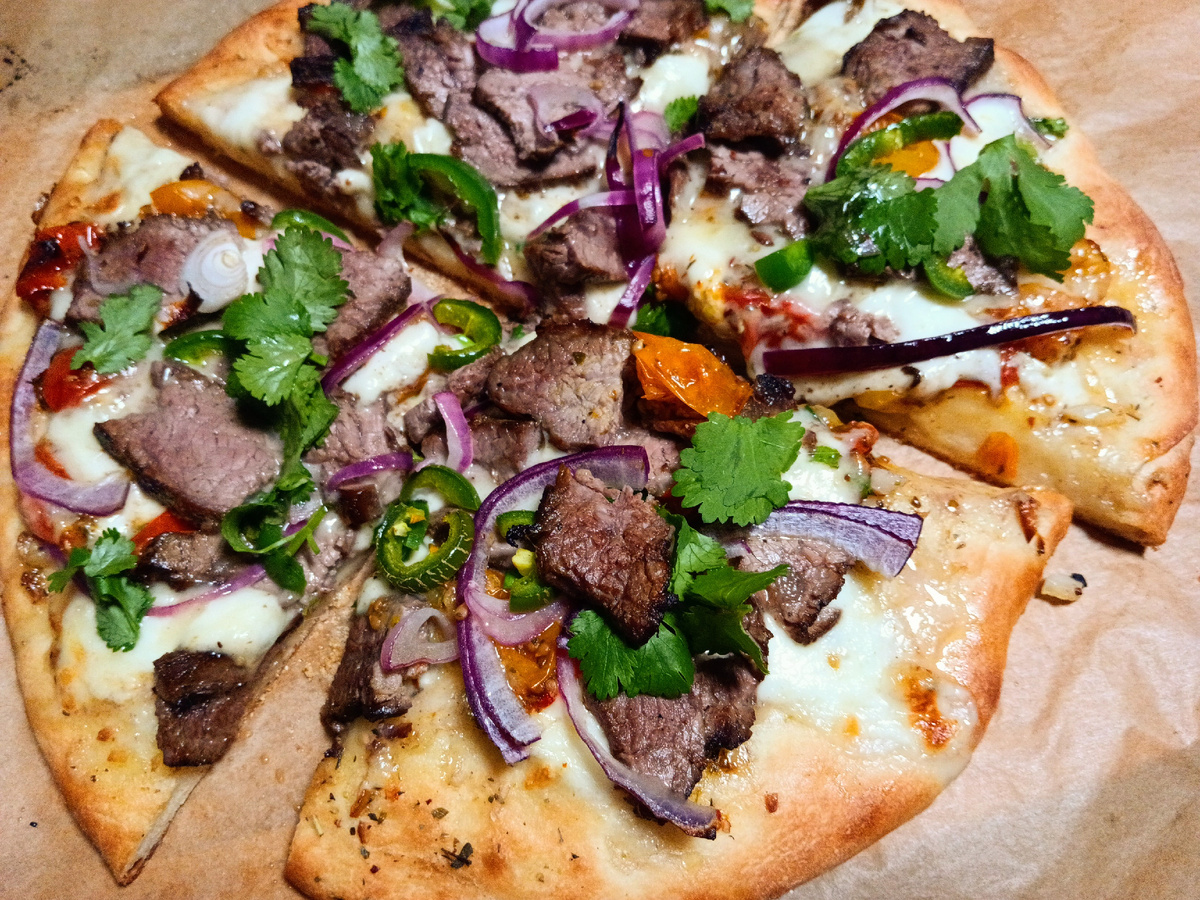 Когда сочный стейк встречается с ароматными запеченными томатами, нежной моцареллой, сыром пекорино и острым халапеньо, рождается настоящая гастрономическая симфония. 1 шарик теста для пиццы
