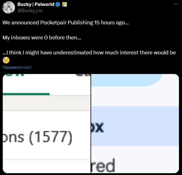 Разработчики выживача Palworld из студии Pocketpair ранее запустили свое собственное издательство Pocketpair Publishing, а сейчас глава студии хвастается тем, что его почта и LinkedIn уже засыпаны сообщениями от разработчиков. В частности речь идет о 68 письмах на почте и 1577 обращениях на LinkedIn. При этом все данные сообщения были получены в течение 15 часов с момента анонса запуска Pocketpair Publishing, а потому можно с уверенностью сказать, что желающих работать с Pocketpair разработчиков довольно много. Также, само собой, среди этого числа наверняка найдутся и мошенники, а потому надеемся, что к Pocketpair подойдут к отбору основательно.