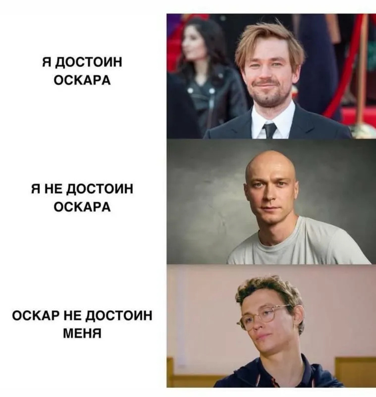 В последние недели вокруг только и разговоров, что об успехе Юры Борисова и его многочисленных номинациях на западные кинонаграды. Когда стало известно о номинации на «Оскар», Никита Кологривый опубликовал в соцсетях мем с высказываниями об «Оскаре» самого Никиты, Александра Петрова и Юры Борисова.