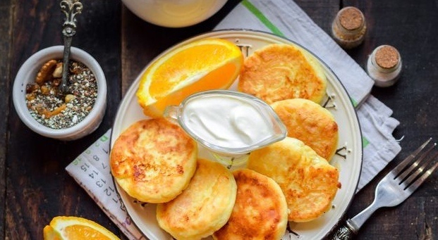 Масло растительное (для жарки) - 3 ст. ложки Подготовить продукты по списку. Творог подойдёт с любым процентом жирности. Апельсин тщательно вымыть, после обдать крутым кипятком и обсушить. Натереть апельсиновую цедру на мелкой тёрке (понадобится примерно 2 ч. ложки). Из половины апельсина выдавить сок (примерно 5-6 ст. ложек). Соединить сок и цедру. Творог переложить в глубокую миску. Если творог используется не однородный, а зернистый, его обязательно нужно протереть через сито или тщательно перетереть вилкой. Вбить яйцо в миску с творогом. Следом всыпать сахар и соль. Сок апельсина и цедру также добавить в миску