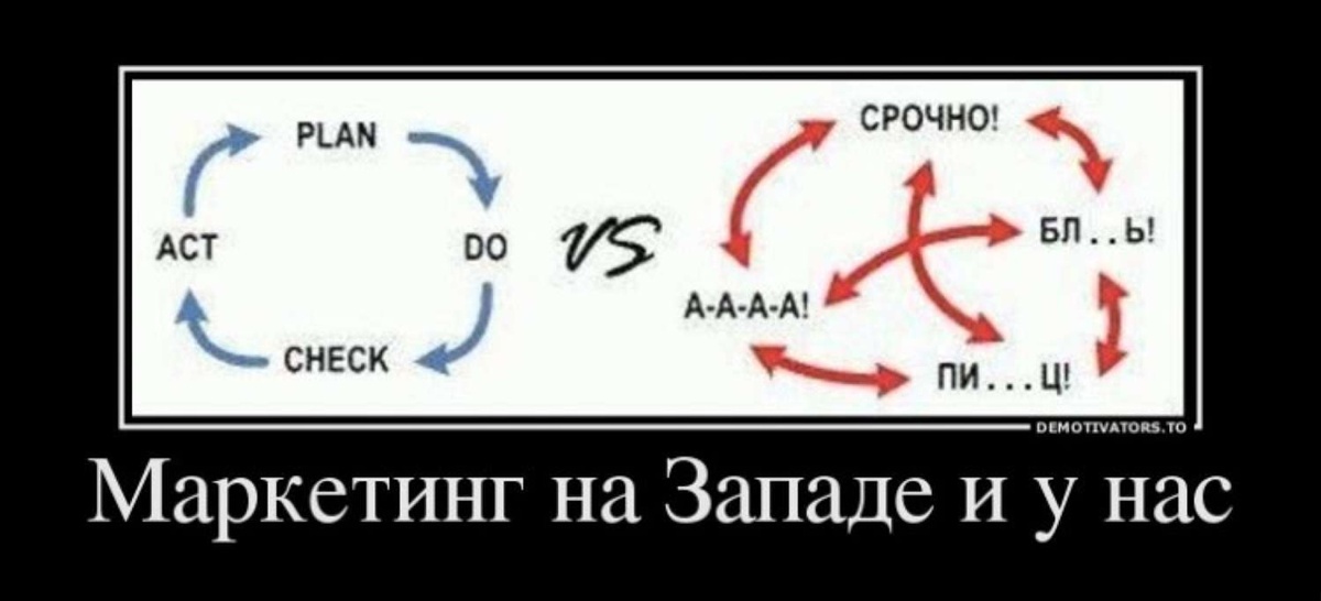 И заметьте - вот это все, перечисленное выше, дано без учета тотальной неграмотности собственников и топ-менеджеров в маркетинговых вопросах (и их нежелании разбираться). Очевидно, что перечисленных выше моментов более чем достаточно для того, чтобы принять решение не создавать (или сократить в полном составе) отдел маркетинга, и потратить деньги на «полезные связи» и накрывание столов «уважаемым людям». В этой системе не получится успешно работать только цивилизованными маркетинговыми методами. Именно поэтому даже очень крупные и солидные иностранные компании со столетней репутацией в России периодически ловят на даче взяток должностным лицам за крупные заказы – просто здесь так принято вести дела. Чистая это «азиатчина» или нет – сложный вопрос. Но на Европу или США точно не похоже.