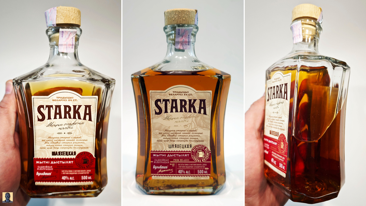 Чрезмерное употребление алкоголя вредит всему! В Беларуси выпускается огромное количество крепкого алкоголя (водки, настоек горьких и т.д.) и старки само-собой. А каждый уважающий себя вино-водочный завод выпускает свою старку. Кстати, старку нередко называют «русским виски», а само название происходит от польского слова, означающего одновременно «и процесс старения, и немолодую женщину». Наверное, потому что делалась она из ржаного сусла и находилась в дубовых бочках из-под вин 10-15 лет. В бочки добавлялись грушевые и яблоневые листья, а также часто добавляли липовый цвет. Сейчас ее столько не выдерживают, если вообще выдерживают. Даже отбросив название заводов, основной рецепт у них один и тот же: спирт Люкс плюс экстракты груши, изюма, яблока, кофе и прочее. Ну и краситель для красоты. Мне подарили белорусскую Старку Шляхецкую производства завода ООО «Завод Бульбашъ». Было интересно что там да как. Сколько стоила неизвестно, но не думаю, что каких-то бешеных денег. Хотел посмотрет