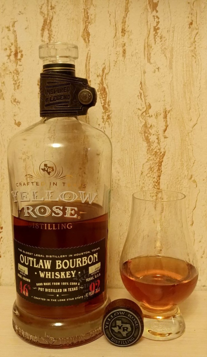 Всем привет от меня, КОньячного Маньяка и наших друзей! Исследую вторую присланный мне Сергеем Жёлтую Розу. Yellow Rose Outlaw Bourbon сделан из 100% техасской кукурузы! Просто традиционно кроме кукурузы используют соложёный ячмень для осахаривания, а также рожь или пшеницу для придания своего характера виски. Ну а здесь только кукуруза! Перегоняется в медных кубах, а потом выдерживается 5-7 месяцев в маленьких бочках здесь же в Хьюстоне. Перепады температуры в 15-20 градусов в этой части Техаса придают бурбону уникальные характеристики, которые можно получить только здесь. На самом деле доля ангелов составляет 15% в год, что делает виски чрезвычайно редким и ценным для производителя. Заметили срок выдержки? Это совсем не два года. На самом деле в самом законе нет указания минимального времени выдержки для американского виски, в том числе бурбона. Этот срок появляется только в определении - Straigth. Вот когда видите это слово на этикетке, то вот там точно минимум 2 года выдержки. Ну а