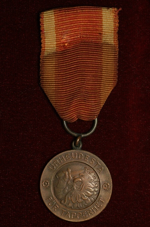 Медаль была учреждена вместе с орденом Креста Свободы в двух степенях: Серебряная и Бронзовая. На лицевой стороне в центре крупным планом изображена голова финского гербового льва с мечом и выбиты по окружности слова «URHEUDESTA / FÖR TAPPERHET» («За отвагу» — на финском и шведском языках). На реверсе надпись «SUOMEN KANSALTA» («От финского народа») и год выпуска, обрамлённые венком.