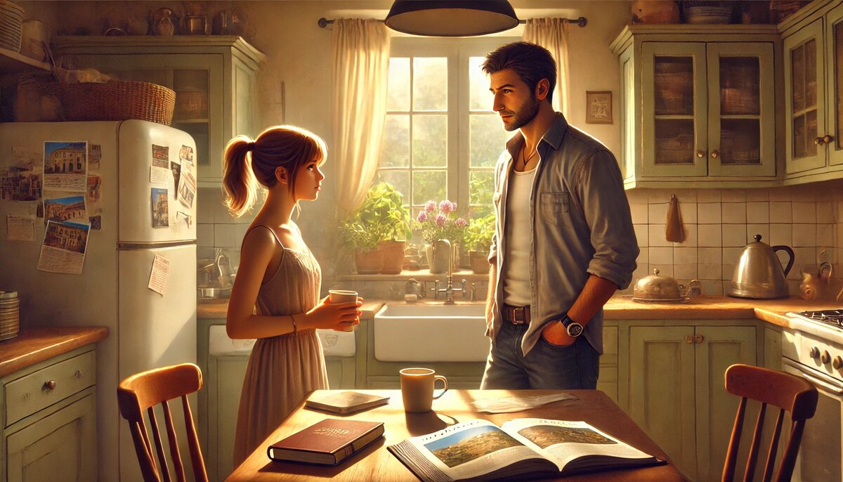 Утро выдалось солнечным и тёплым, предвещая жаркий июльский день. Лена стояла у окна их небольшой кухни, держа в руке чашку крепкого чёрного кофе. На столе лежал путеводитель по Италии — страна, куда они с мужем Сергеем собирались полететь через два дня. Её сердце трепетало в предвкушении: наконец-то они смогут отдохнуть от серых будней, работы, постоянной гонки. Ну, впрочем, работы касалось это больше Сергея — Лена уже несколько месяцев сидела дома, взяв паузу после увольнения, и занималась домом, собой, да иногда помогала подругам с их проектами.