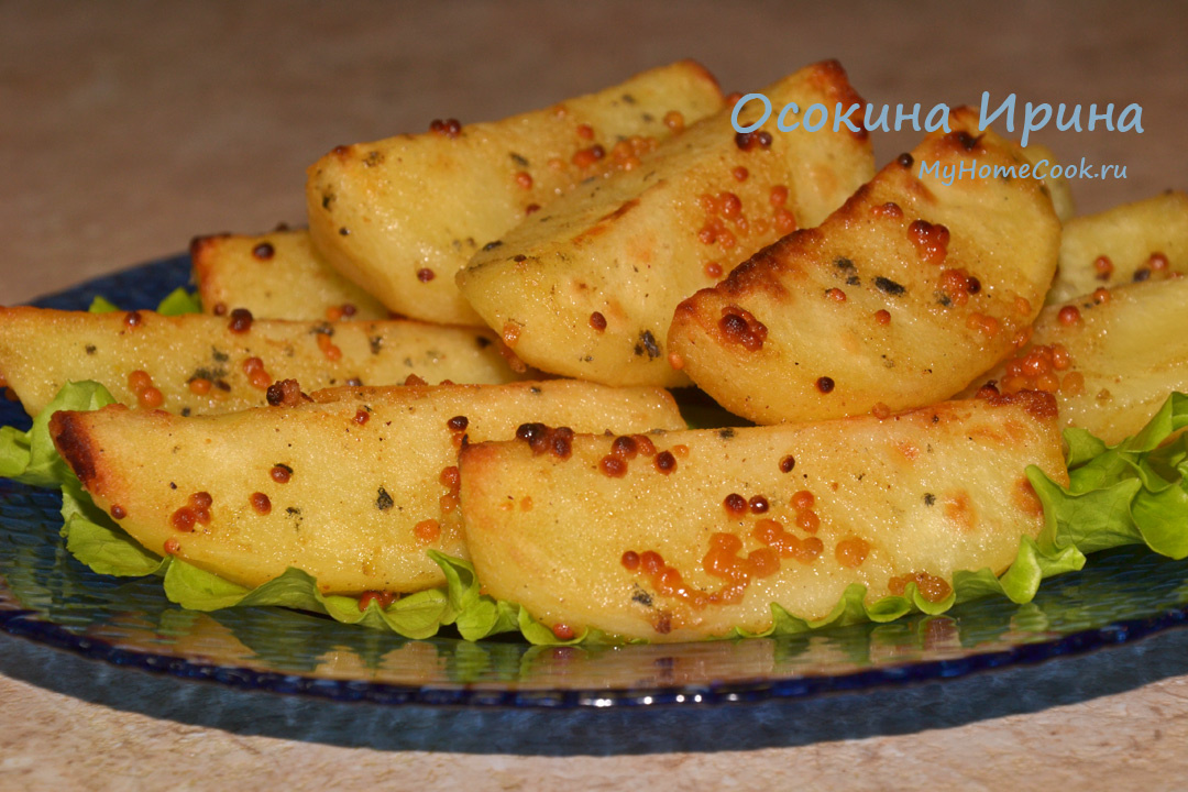 Запечённый картофель любят, кажется, все. Но ведь хочется не просто вкусно, но и неизбито, поэтому сегодня у меня такой вариант: в миске смешала 3 ст.л. оливкового масла, 1 ст.л. дижонской горчицы, 1 ст.л. зернистой горчицы, 1 ст.л. мёда, соль и перец по вкусу. Около 1,5 кг очищенного картофеля разрезала на сегменты и приварила 5 минут в подсоленной воде, откинула на дуршлаг, сразу, горячим добавила в миску к маринаду, промешала, через пару минут переложила в смазанную маслом форму и запекла в духовке, разогретой до 180 градусов, в течение 20 минут. Ооочень вкусно получилось! Не картошка, а мечта) Приятного аппетита