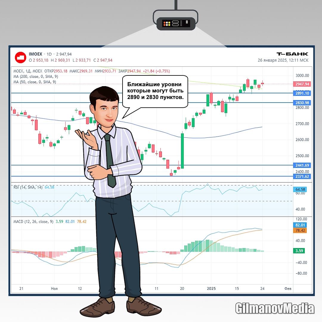 Привет всем! 👋 Индекс Мосбиржи 24 января закрылся на уровне 2947,94 пункта, неделя была волатильная, но по итогу в процентах это -0,02% 📉 откуда неделю начали, туда и вернулись. И если неделю назад я верил в краткосрочный рост, который в целом и случился, 20 янв. индекс достигал отметки в 2980 пунктов, то на предстоящей неделе я ожидаю снижение рынка 📉 На этой неделе рынок двигал конечно же новоизбранный президент США. Трамп сказал это, Трамп сказал то, и так всю неделю, высказываний было настолько много, а некоторые из них просто абсурдные, что все это в какой-то момент становилось похоже на какой-то информационный шум. Но хотим мы этого или нет, он двигает рынки, как например на ВЭФ в Давосе, Трамп призвал к немедленному снижению процентных ставок во всем мире, что вызвало позитивную реакцию на нашем рынке, и заявил о планах попросить Саудовскую Аравию и ОПЕК снизить цены на нефть. А также что его администрация нацелена на то, чтобы активизировать добычу в США нефти и газа. Так