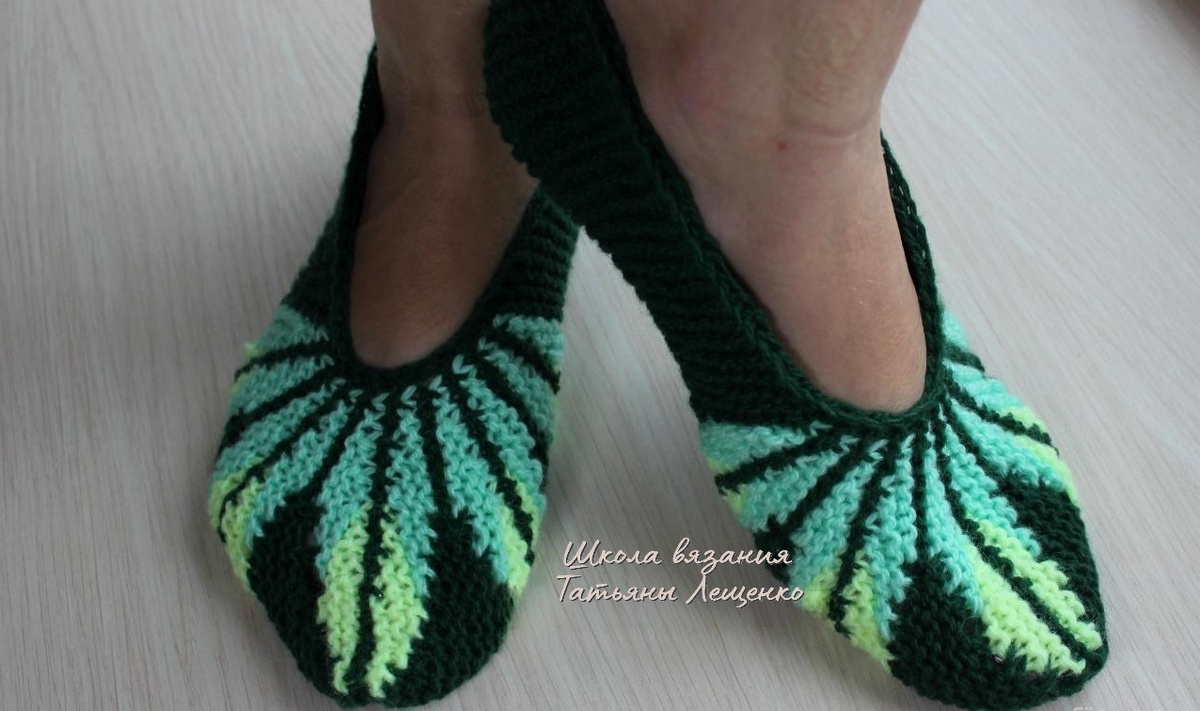 Следки Листочки, вязаные спицами - это интересная модель следков, выполненная укороченными рядами.
