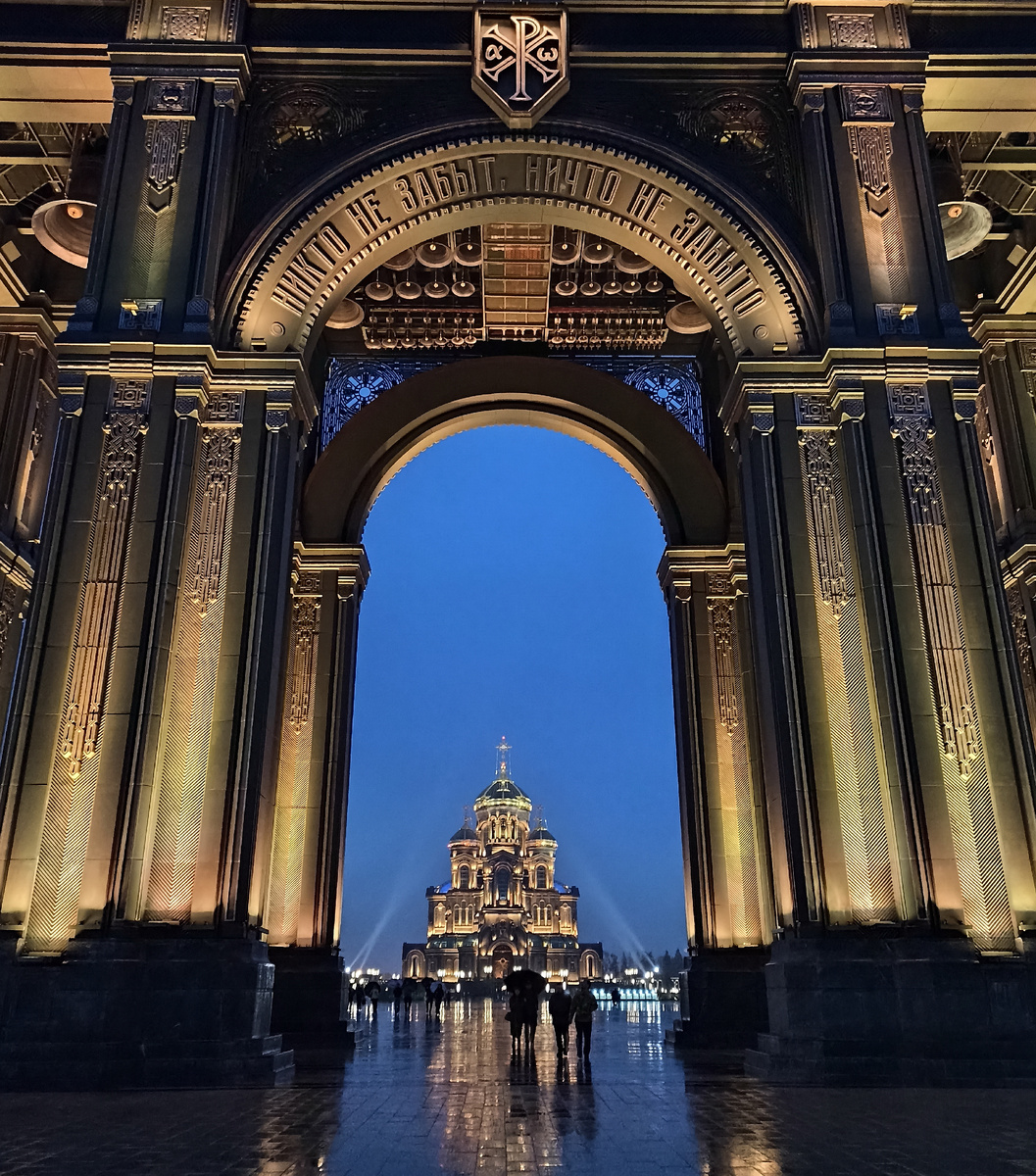 Главный храм Вооруженных сил России - собор в честь Воскресения Христова посвящен 75-летию Победы в Великой Отечественной войне, а также воинским подвигам русского народа во всех войнах, которые пережила наша страна. Его построили в удивительно короткое время - всего за полтора года. А строили его под руководством архитектора Дмитрия Смирнова более четырех тысяч человек - лучшие военные строители со всей страны. Пропорции храма основаны на символичных числах. Например, высота храма- 96 метров. В 960 году родился Святой Равноапостольный Великий князь Владимир, в честь которого освящен нижний храм. Диаметр барабана главного купола – 19 метров 45 сантиметров. На барабане находится 8 окон. Диаметр купола – 22 метра 43 сантиметра. Из этих чисел получается дата подписания акта о безоговорочной капитуляции Германии - 8 мая 1945 года в 22 часа 43 минуты.... Этот собор - третий по высоте православный храм в мире (96 метров). Его золотые купола похожи на шлем Александра Невского. Изготовлены