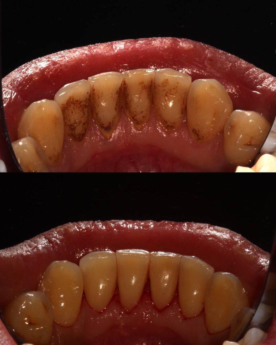 До/ После 😎 профессиональная гигиена полости рта. 👩🏼⚕️Работа выполнена стоматологом терапевтом Грудовой Александрой Игоревной. Вы думаете, что вам не нужна профессиональная чистка зубов? Ошибаетесь! 🦷 Многие считают, что регулярная домашняя гигиена – это всё, что нужно для здоровья полости рта. Но даже самая тщательная чистка зубной щёткой и нитью не может полностью удалить весь налёт и камень, который со временем накапливается на зубах. А ведь именно эти отложения являются основной причиной кариеса, воспаления дёсен и неприятного запаха изо рта. ✨ Профессиональная чистка зубов – это процедура, которую рекомендуется проводить раз в полгода. Она помогает: - Удалить твёрдый зубной камень, который невозможно убрать самостоятельно. - Снизить риск развития заболеваний пародонта (гингивит, пародонтит). - Вернуть зубам их естественный цвет и блеск. - Предотвратить появление кариеса и других проблем с зубами. 👩⚕️ Как проходит процедура? В нашей клинике мы используем современные методы ч