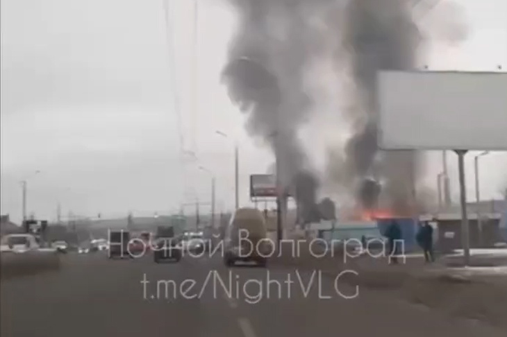 В Волгограде очевидцы засняли крупный пожар на базе стройматериалов