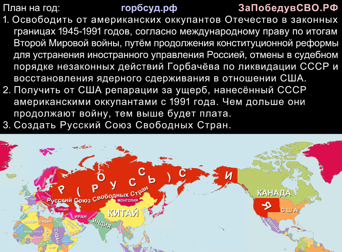 Договариваться с США можно только на базе международного права. А согласно международному праву по итогам Второй Мировой войны, наша территория в границах СССР 1945-1991 годов. Путин ещё в декабре 2021 года предложил, чтобы США и НАТО с неё убирались. Однако, добиться исполнения этого требования поможет лишь ядерное сдерживание в отношении центра принятия решений - США. Таким образом, к началу переговоров необходимо: 1. Восстановить суверенитет России, утерянный в 1991-1993 годах вследствие поражения в Холодной войне (статьи 15п4, 13п2 Конституции 1993 года), что имеет право сделать лишь народ на референдуме о передаче полномочий по управлению нашей страной от американских международных организаций Государственному Совету во главе с Президентом. Референдум же будет проведён, когда освободить Отечество от американских оккупантов захотят большинство граждан - ЗаПобедувСВО.РФ 2. Добиться отмены в судебном порядке незаконных действий американского агента Горбачёва по ликвидации СССР - горб
