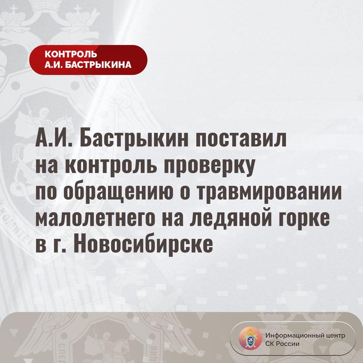 А.И. Бастрыкин поставил на контроль проверку по обращению о травмировании малолетнего на ледяной горке в г. Новосибирске