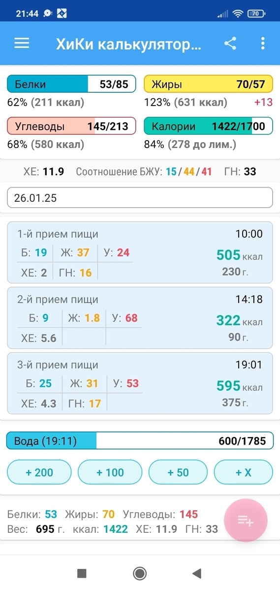 Худею со 100 кг, каждый день не взвешиваюсь, вес около 86 кг на сегодняшний день Вчера вечером испекла блинчики на завтрак, но утром вспомнила про творог, доела его. В детской тарелке, потому что предложила дочке, но она отказалась. А блины мне стали обедом, не стала к ним ничего добавлять На ужин не знала что приготовить к котлетам, сделала из говядины фарш, не добавляла яйцо и свинину, только немного хлеба и лук ну и специи, сварила красную чечевицу с рисом вместе, оказалось есть такой рецепт. Добавила лук, чеснок и томатную пасту. А ещё приправу для фахиты. Стараюсь добавлять овощи, хочется. Зимой сложно с этим, спасают замороженные. Перекус, не знаю зачем, попробовала, муж купил. Не очень хотела, по мне не очень фрешпай апельсин. Записала в ужин. Итого за день 1400 ккал