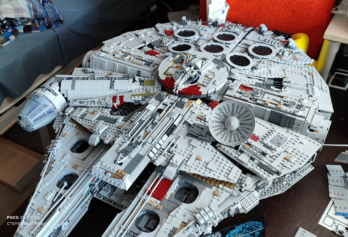 Когда в статье от 1-го января я рассказал о том, какой подарок сделал дочери на Новый год, то предположил, что "...Возможно после сборки я захочу поделиться и более конкретным отзывом на данную модель...". И вот менее чем за месяц (сборка "Сокола тысячелетия" завершилась 26 января) дочь самостоятельно(!) собрала всю конструкцию воедино, а я лишь периодически наблюдал за процессом и иногда фотографировал промежуточные этапы сборки. А вот теперь, когда звездолёт собран, я наконец могу написать честный отзыв о данном конструкторе и определённо сказать, стоит ли покупать неоригинальную копию или внимания заслуживает только оригинал. На последний вопрос могу ответить сразу: если у вас денег "куры не клюют", то тогда конечно можете купить оригинал стоящий раз в 5-6 больше копии (за которую, к слову, я отдал что-то в районе 14000Р), которая абсолютно ничем не хуже. Да, прежде чем купить я прочитал много отзывов и хотя в большинстве своём они были положительными, но было несколько в которых л