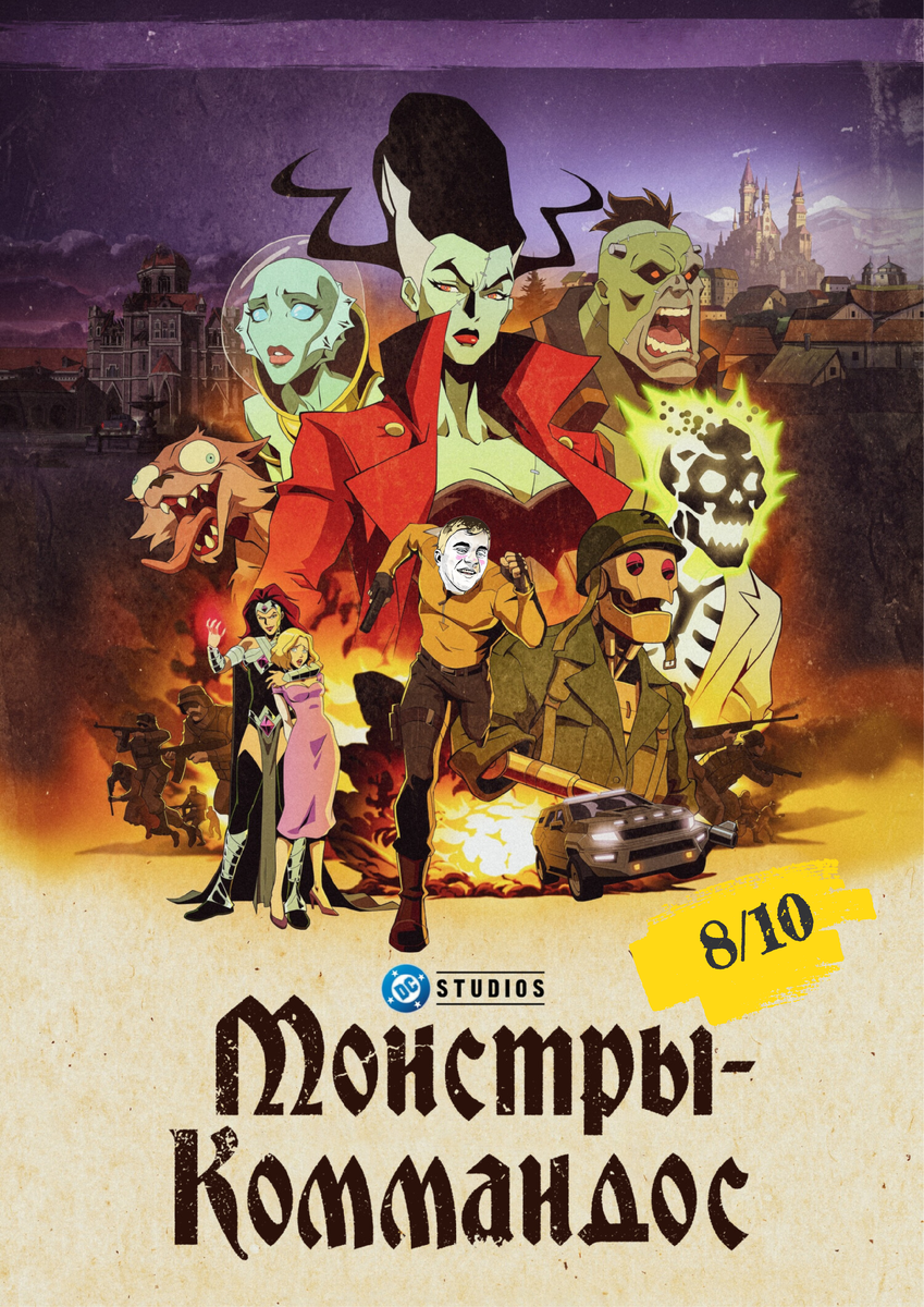 Монстры- Коммандос Новая глава киновселенной ДС от Джеймса Гана. Если вам понравилась трилогия про «Стражей Галактики» и второй «Отряд Самоубийц», то и «Монстр Коммандос» не оставит равнодушным. Данная мультсериал ближе к отряду чем к стражам, персонажей за 7 серий раскрывают лучше, чем в фильме за 2 часа (логично). В истории есть основной сюжет про спасение принцессы и предыстория каждого персонажа, самые яркие на мой взгляд — это Ласка с его предысторий, которая тянется с «Отряда самоубийц 2» и робот G.I. с его борьбой с нацизмом, вообще все истории по своему хороши, и отлично раскрывают персонажей. Сериал идеально покажет драматические моменты с отличным юмором без ограничений в любимом стиле Гана, классный экшен с отличной музыкой в исполнение Gogol Bordello и др., интересный дизайн персонажей и рисовка приятна глазу. Интересный перезапуск киновселленной и ждем Супермена и других фильмов.