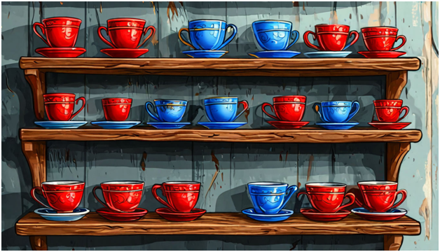 - первое блюдце синее и второе блюдце синее (СС) Для каждого из этих вариантов (выбрать два блюдца с первой полки) есть четыре варианта выбрать две чашки со второй полки, т.е. всего 16 вариантов. Это много. Поэтому укажем только те варианты