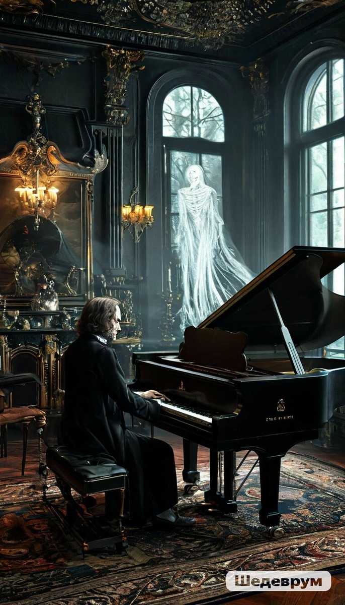 ПРИЗРАК ФЕРЕНЦА ЛИСТА. В поместье старом - тени прошлых лет. Под паутиной времени изящество былого. Сквозь плюш на окнах, щурясь, лунный свет Рождает призрачные думы и виденья снова. Лишь раз в году, лишь в ночь кровавых лун, Когда открыты в иномирье двери, Когда из сада ветерок-шалун Слегка колышет кисти на портьере, Приходит он. В его глазах печаль. Походкой тихою, неслышною, украдкой. Откинув фалды, он садится за рояль, Поставив пред собою старых нот тетрадку. ...И о любви, о грёзах, о былой мечте Пассажи тонких пальцев проникают в сердце, И, кажется, что в э нитой лунной темноте Вдруг открывает он мне в душу дверцу. ...но ночь не вечна... Утро и рассвет... И снова не разгадана загадка... Маэстро, со слезинкою в глазах Уходит в ночь, прижав к груди тетрадку. Андрей Крыло Ворона