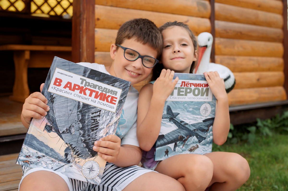 Они расскажут о великих героях нашей страны и об их подвигах, от которых замирает сердце - эти люди творили историю и стали ярким примером мужества, отваги и силы духа для многих поколений. Мы говорим про альбомы, созданные писателем и художником Владиславом Серовым. В формате яркого комикса ребенок познакомится с русскими первопроходцами, мореплавателями, военачальниками и путешественниками. 1. "Трагедия в Арктике. Красин спешит на помощь". История о неудавшейся воздухоплавательной экспедиции итальянца Умберто Нобиле. Его дирижабль отправился в Арктику, чтобы долететь до Северного полюса, но на обратном пути потерпел крушение. К счастью, из пробитого корпуса на лед выпали палатка, продукты, пистолет и радиостанция, что и помогло участникам экспедиции выжить. Им на помощь пришли советские пилоты, чудом нашедшие людей на льдинах, а потом и ледокол "Красин", который смог добраться до погибающих путешественников сквозь сковавшие Арктику паковые льды. 2. "Витус Беринг. Великая северная экс