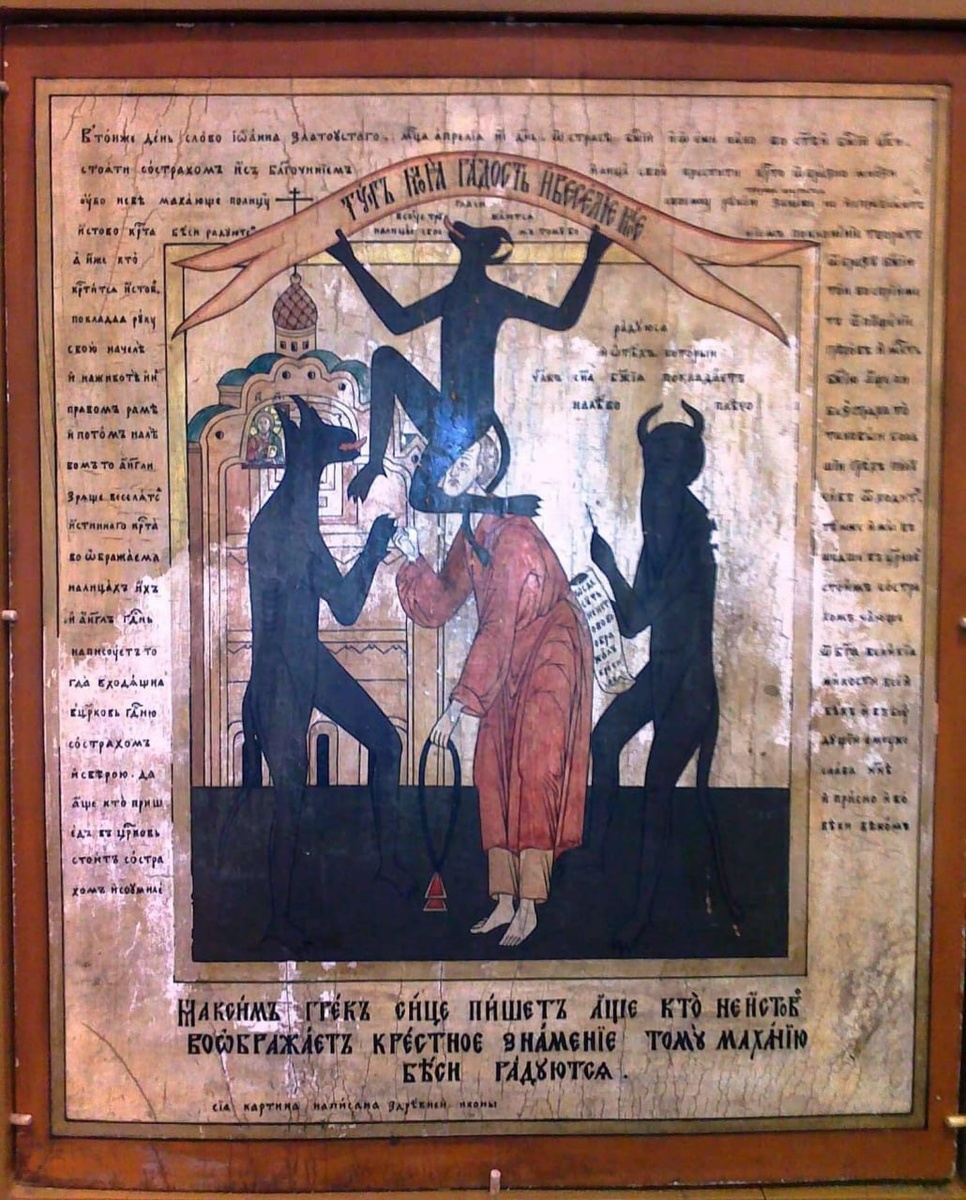 Адописная икона —картины с двумя слоями. На первом, внешнем, изображались традиционные для икон сюжеты и образы: Иисус Христос, святые угодники. На втором слое, скрытом под первым, были нарисованы картины ада, чертей, дьявола. О них ходят многочисленные легенды, часто встречаются упоминания в разных исторических документах, но реальные примеры таких икон до наших дней не сохранились. Впервые термин «адописные иконы» встречается в памятнике XVI века, житие Василия Блаженного. Пример в XVI веке с иконой Богоматери, выставленной на Варварских воротах Москвы. Среди народа она слыла чудотворной — и к ней выстраивались очереди. Однажды к образу подошел Василий Блаженный — скитавшийся по московским улицам святой — и бросил камень. "Схватили юродивого и бить стали. А он кричит: поскребите ее, поскребите! Обидчики стали разглядывать разбитую камнем икону. И под ликом Богородицы увидели вторую краску. Черным по красному изображены черти и дьявол", — повествует житие святого, составленное в конце